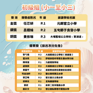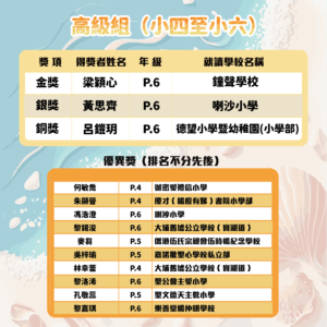 (2) 初級組及高級組學生獎項 – 各自分: 金*、銀、銅、優異 (共10名) – 獎狀及禮券